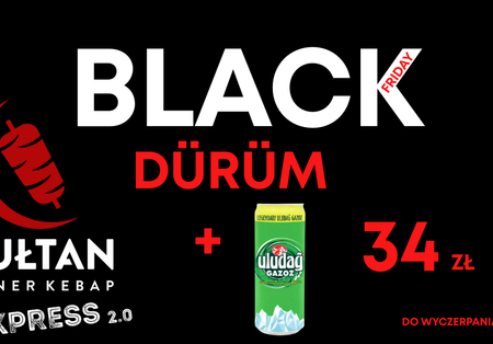 Mięso, sałata, pomidor, cebula, kap.czerwona, sos zawijane w czarnym placku w zestawie z turecką lemoniadą Uludag